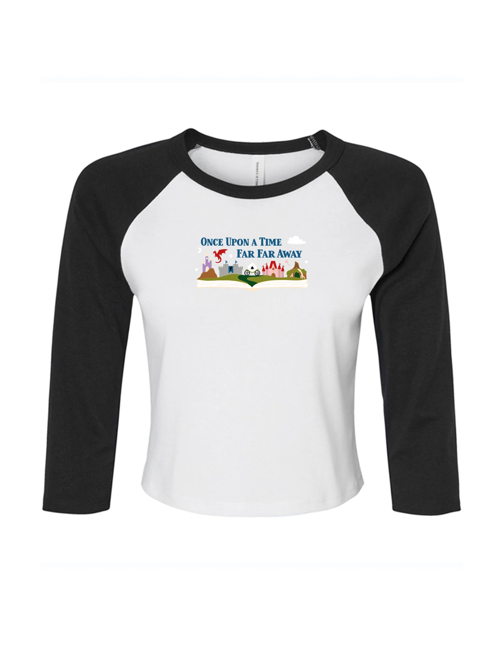 This Far Far Away raglan tee blends retro sporty style with embroidered fairytale details. Soft organic cotton makes it perfect for daily wear. A fun take on nostalgic storytelling fashion.